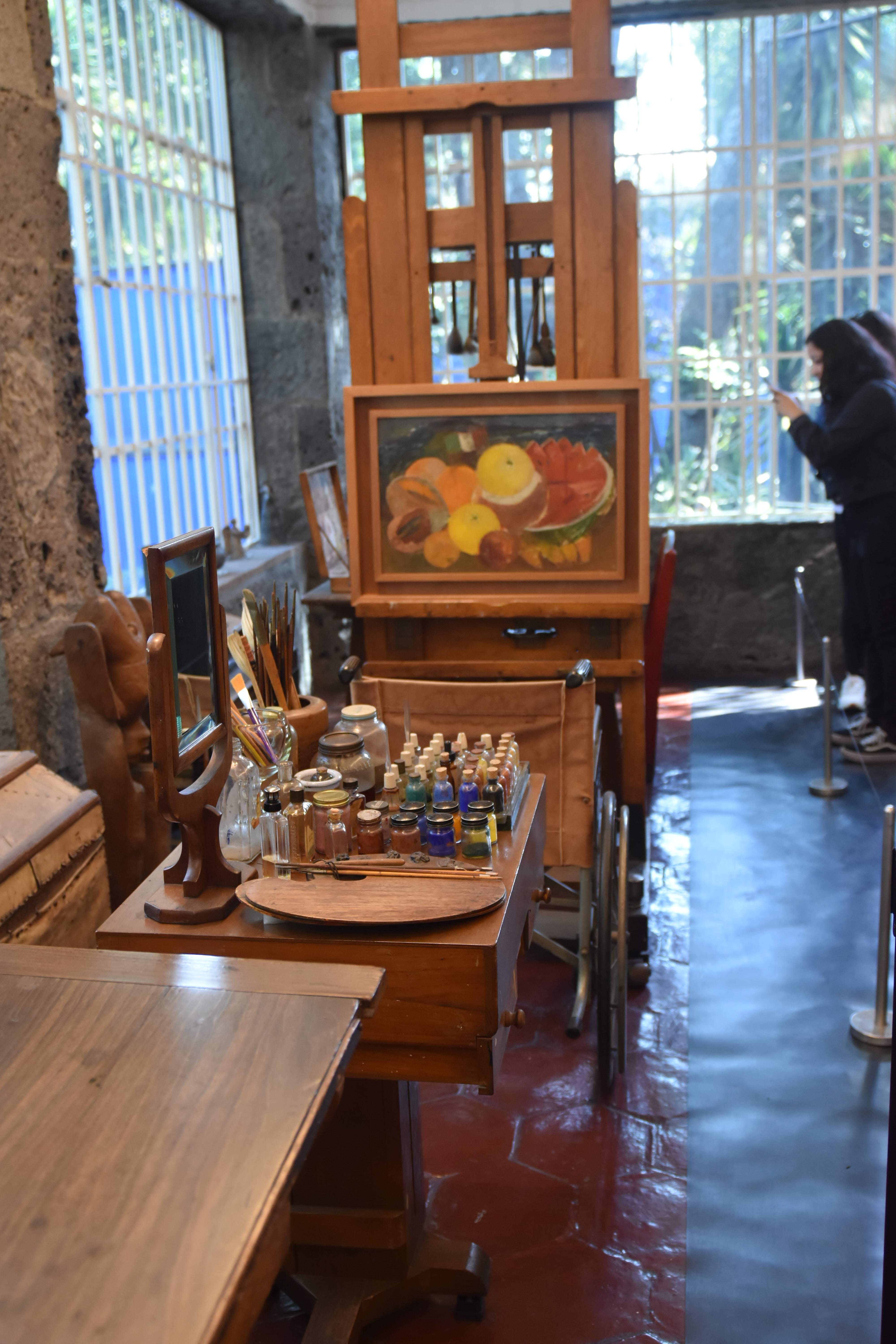 After visiting a local church, we walked to the Frida Kahlo Museum, also known as Casa Azul (the Blue House). This was the lifelong home of Frida Kahlo, and after her passing, her husband, Diego Rivera, donated the house and its contents to be preserved as a museum in her memory. Today, Casa Azul showcases not only the couple’s artwork but also provides a glimpse into the bohemian and artistic lifestyle of Mexican intellectuals in the early 20th century. The museum offers a fascinating look at Kahlo’s world—her personal belongings, traditional Mexican crafts, and the spaces where she lived and created her most famous works.