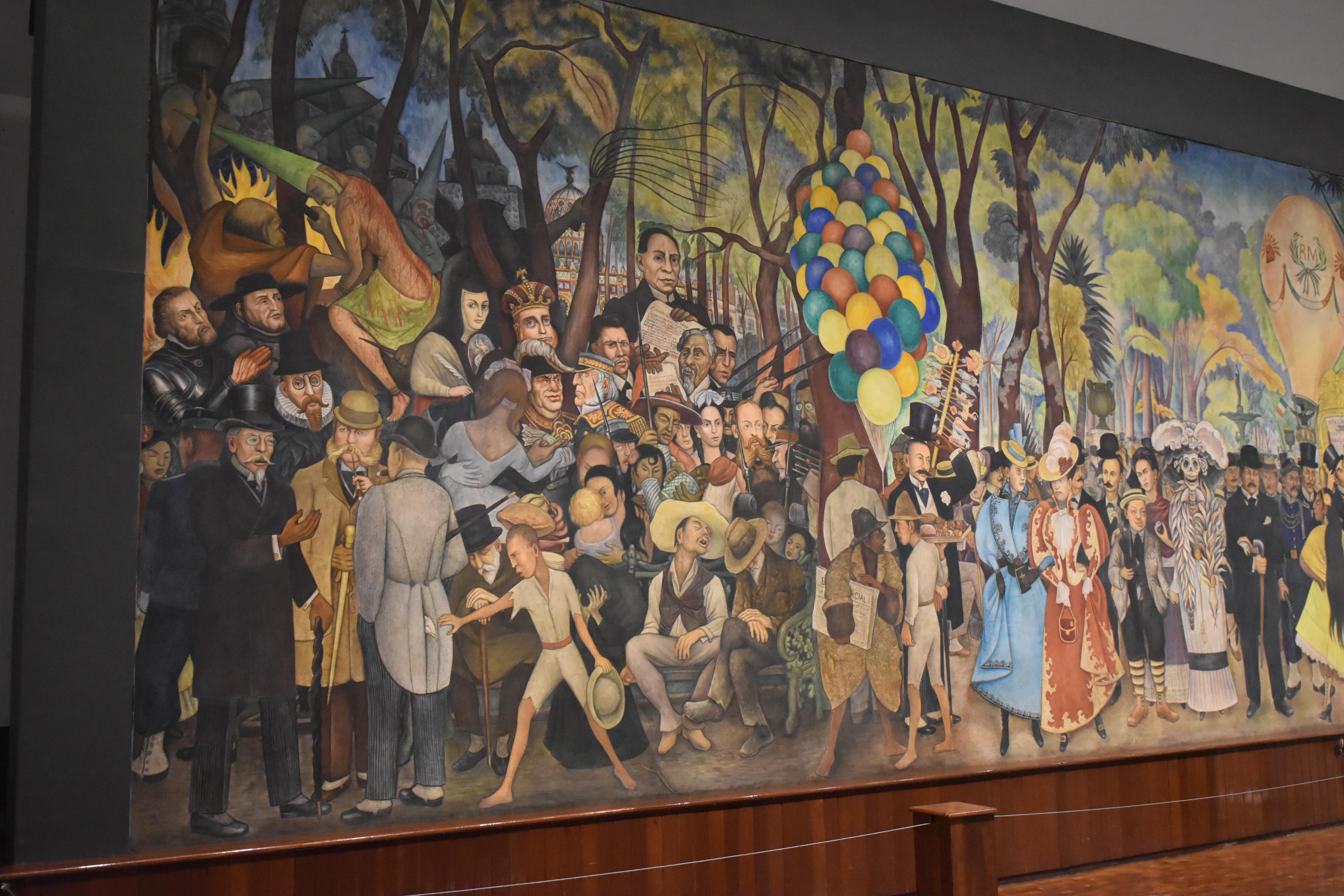 Later, Clare and I returned to the Palace of Fine Arts before making our way to the Museo Mural Diego Rivera to see the iconic mural, Sueño de una Tarde Dominical en la Alameda Central (“Dream of a Sunday Afternoon in the Alameda Central”). Painted between 1946 and 1947, this 51-foot-long masterpiece vividly portrays famous figures and pivotal moments from Mexican history, blending art and storytelling in Diego Rivera’s signature style.