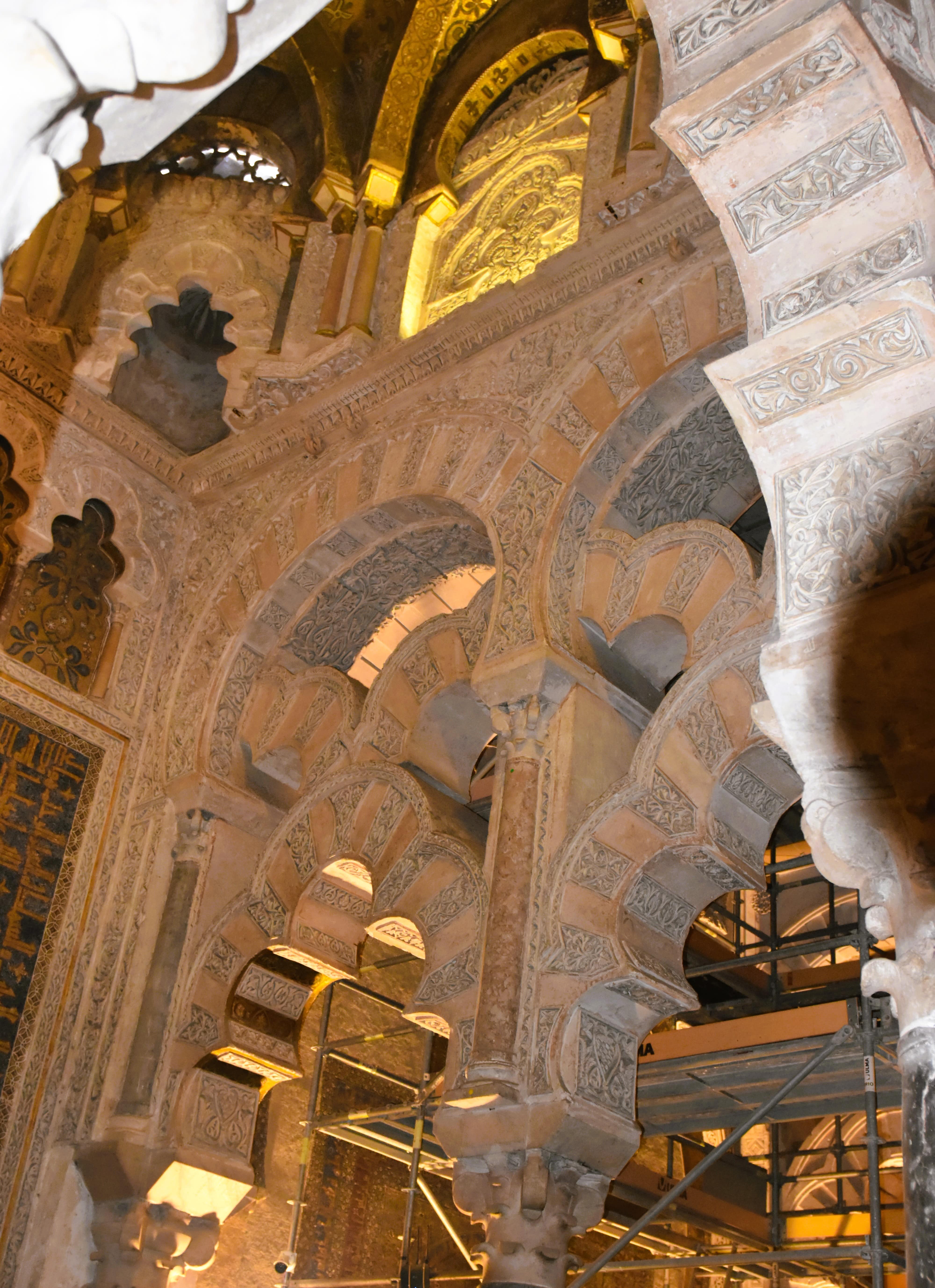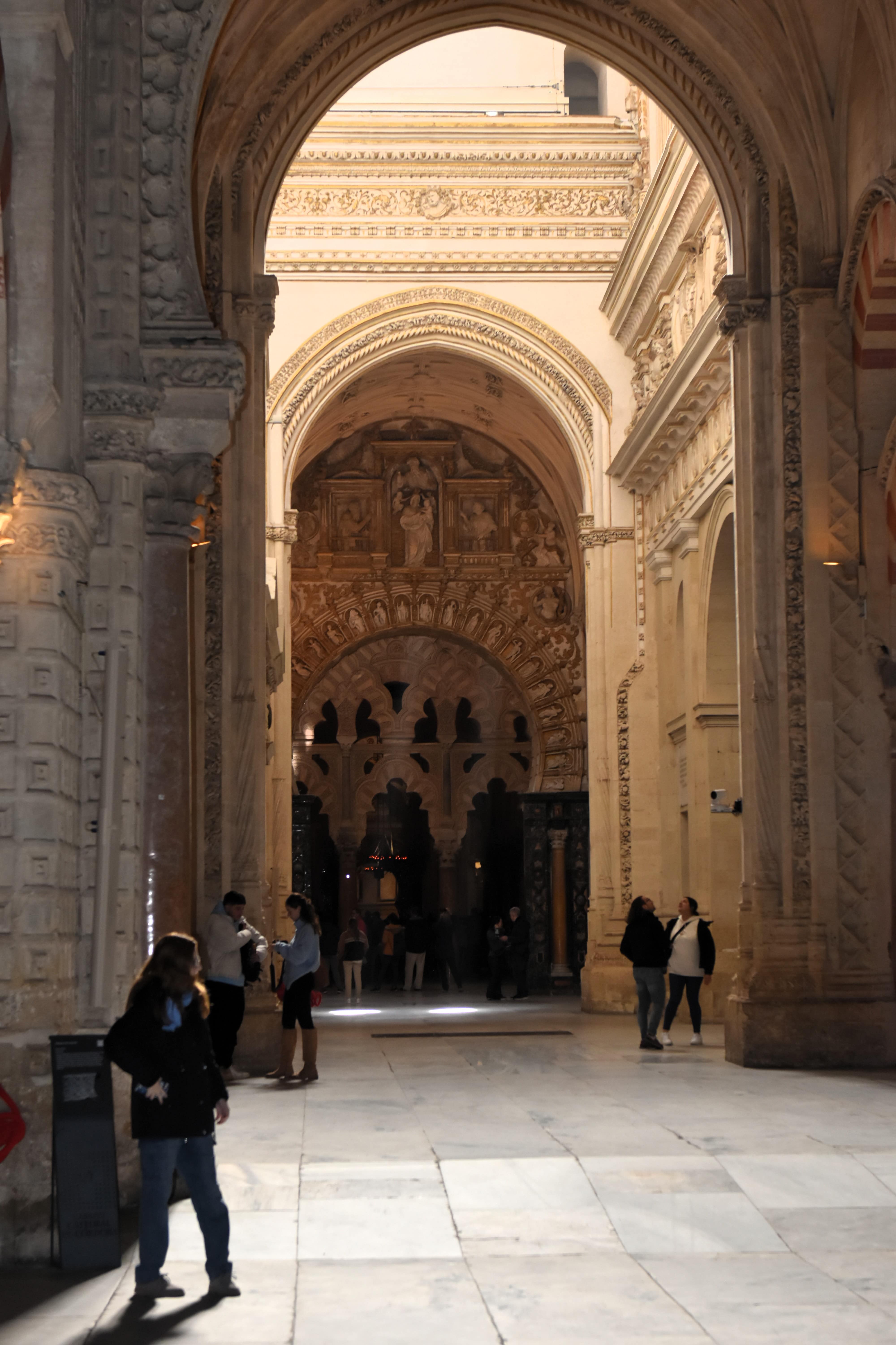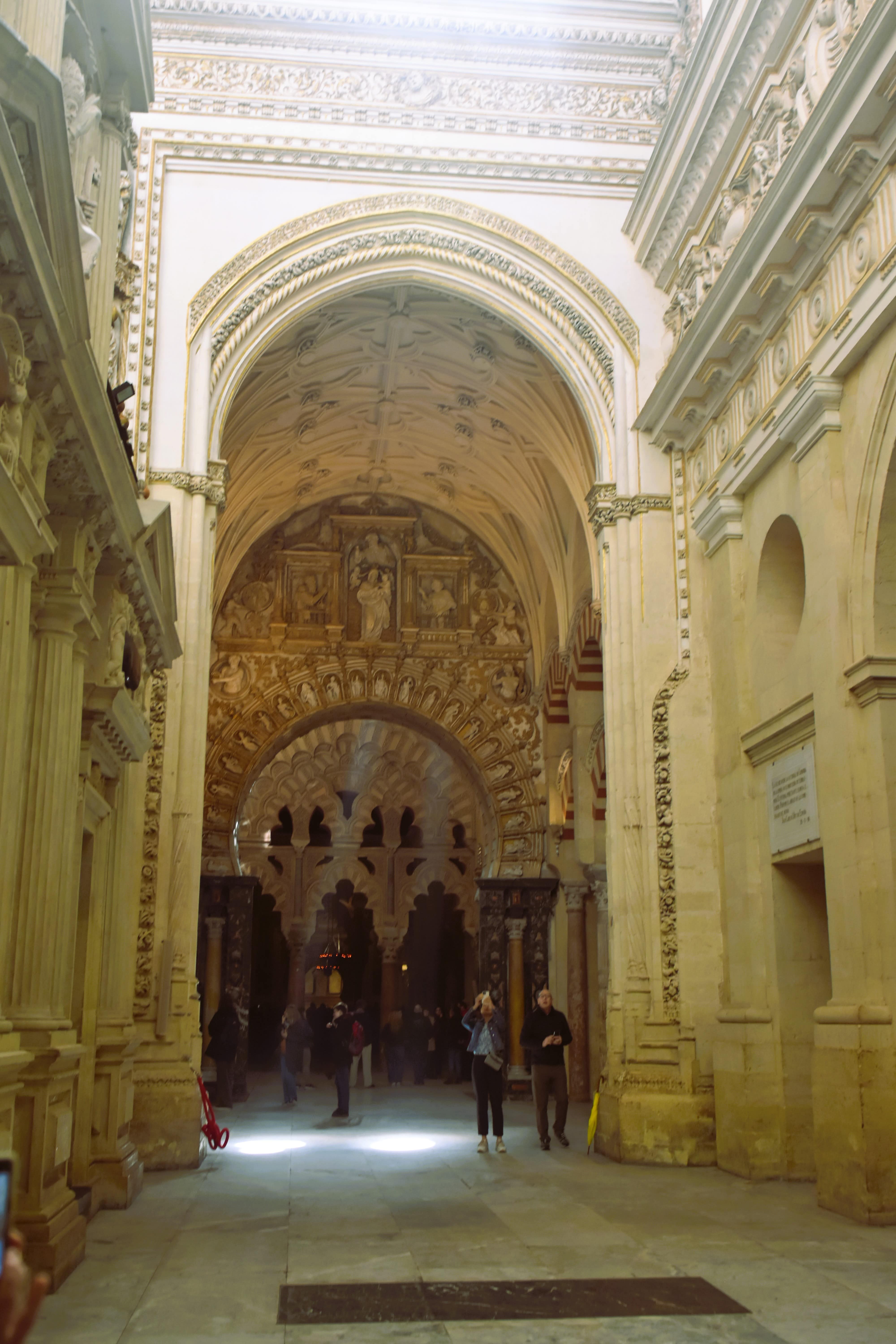 Walking through its forest of red-and-white striped arches, visitors can admire the intricate mihrab (prayer niche) that once directed Muslim worshipers toward Mecca. In the center, a grand Renaissance-style cathedral rises, symbolizing the city’s transition from Moorish rule to Christian Spain.