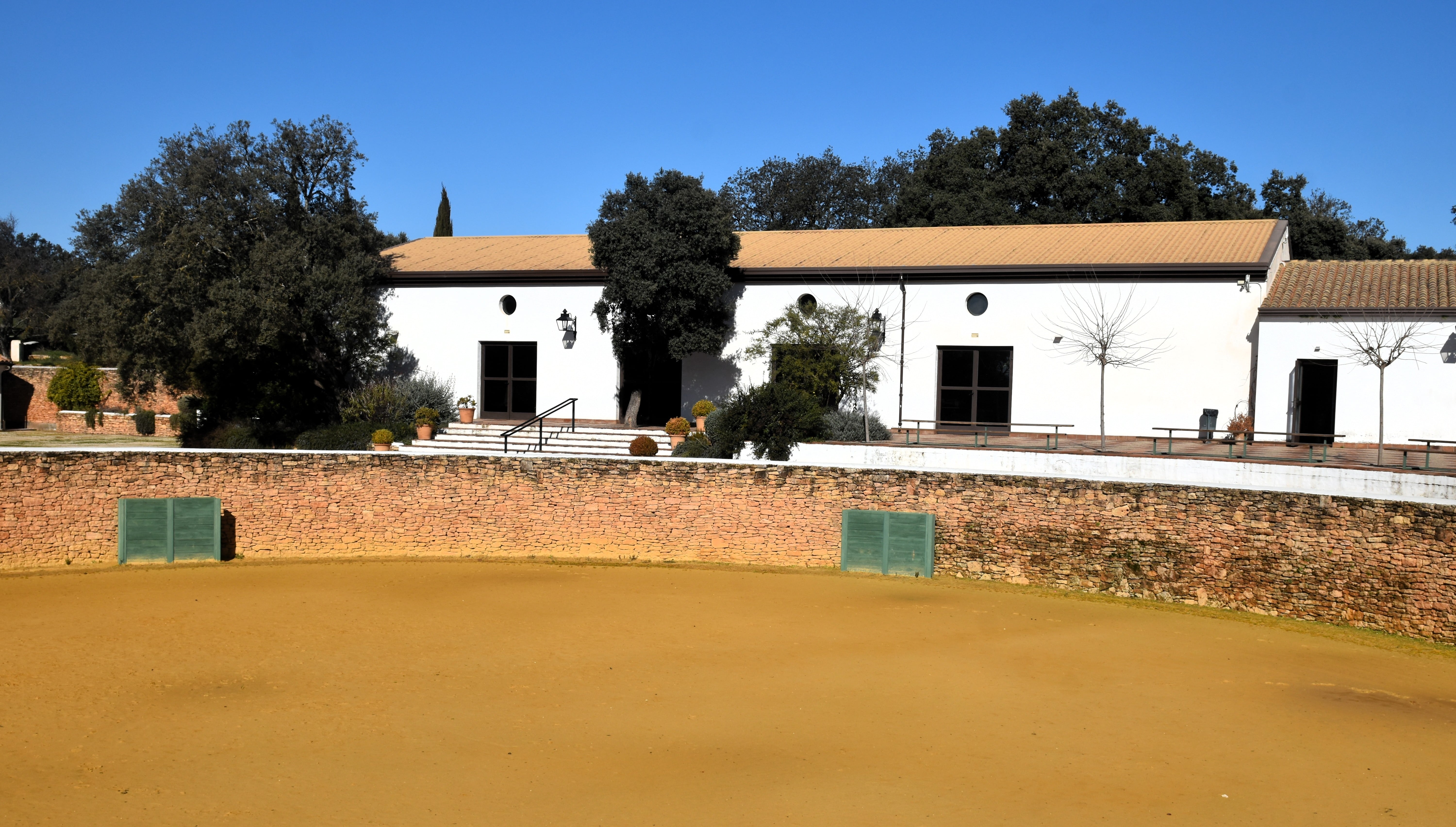 After lunch, we went to a nearby bull ranch, where a staff member walked us through the bull fighting rink used for training and the stables a the Andalusian reserve. We were able to see the Toro Bravo or Toro de Lidia (Spanish Fighting Bull) and thoroughbred Andalusian horses. We learned about the breed and discussed the arguments and controversy surrounding this Spanish tradition.