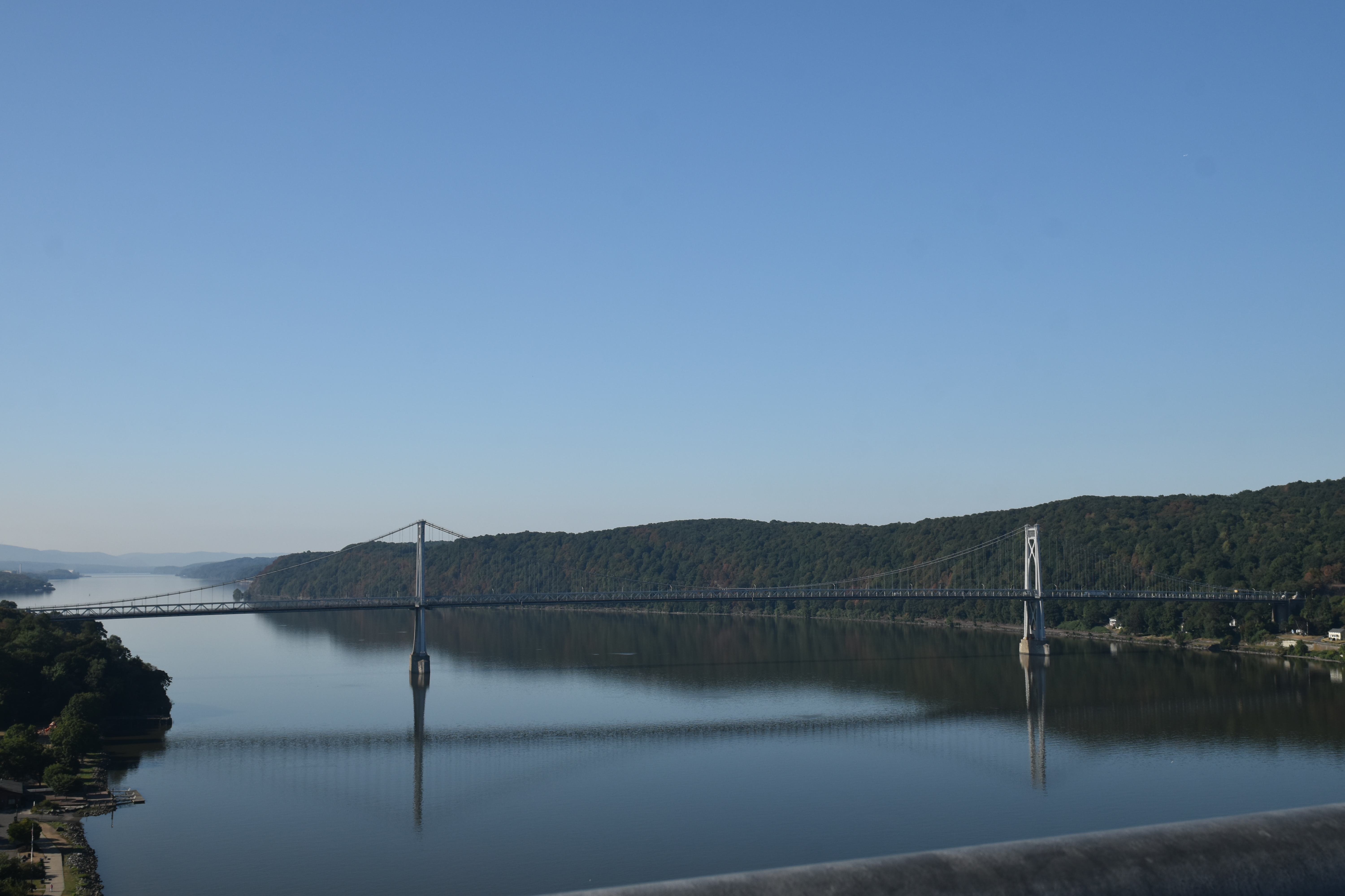 We went to dinner that evening at a restaurant on the Hudson. We first tried Mahoney’s Irish Pub & Steakhouse but were not in the mood for bar food so strolled down to River Station which had more seafood and a better view of the river. The following morning, Thursday, we went to the Walkway over the Hudson. The walkway had been the Poughkeepsie-Highland Railroad Bridge, built to transport western raw materials to eastern industrial centers. At the time of its opening, it was the longest bridge in the world. At its peak as many as 3,500 rail cars crossed the bridge each day. A fire destroyed the tracks in 1974, probably started by a spark from a train’s brakes. Due to poor maintenance, a service pipe meant to pump water onto the tracks in case of a fire was inoperable. The bridge was rebuilt and re-opened in October 2009 as the Walkway Over the Hudson State Historic Park. At 212 feet above the Hudson River, this 1.28 mile linear park boasts scenic views north to the Catskills and south to the Hudson Highlands. The views are worth the walk.