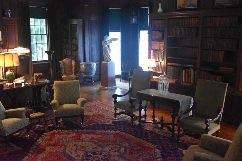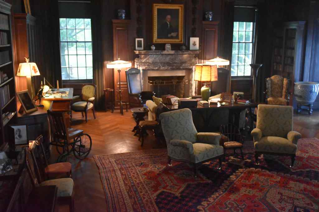 Before leading us upstairs, our guide pointed out the stair railing, noting that it had been touched not only by generations of Roosevelts but also by their many distinguished guests, including visiting kings, queens, and Prime Minister Winston Churchill. The bedrooms on the second floor were spacious for their time, though smaller than one might expect given the stature of the guests who stayed there.